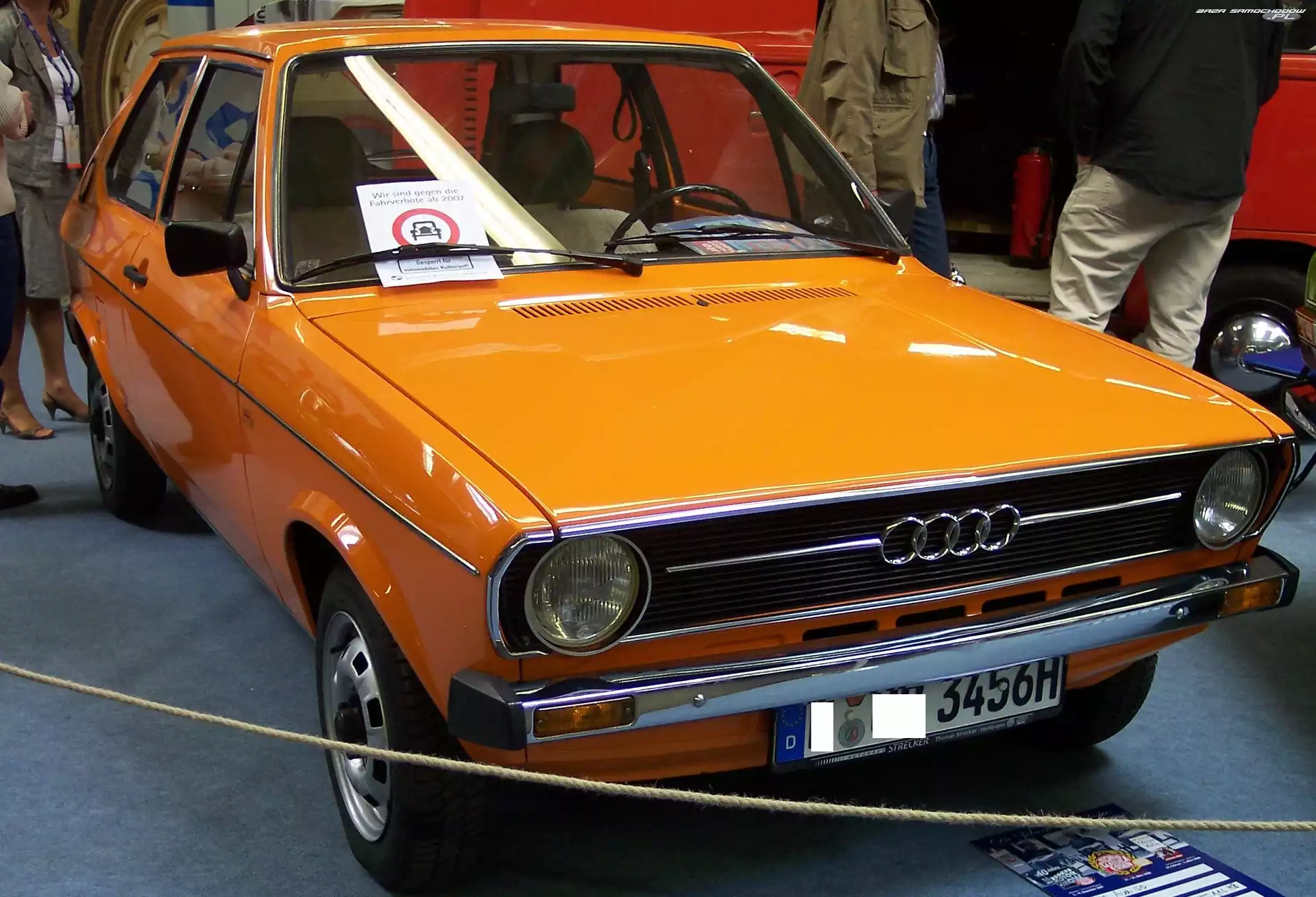 Audi 50 Drzwi, Audi 50 Reklama, Pomarańczowe, Audi 50 Hatchback, Audi 50 Prezentacja, Audi 50, Wystawa Wystawa, Audi 50, Salon Audi 50, Chrom, Przód, Zderzak